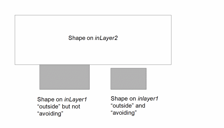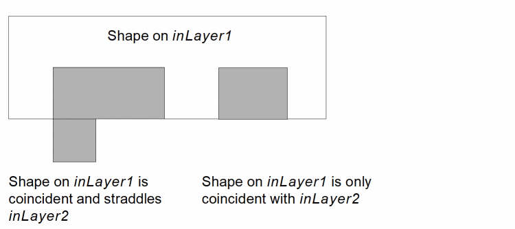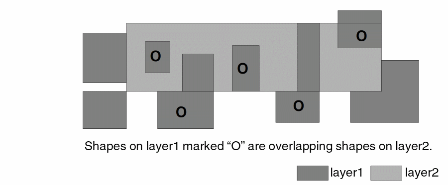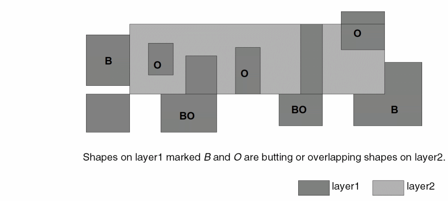 - If you specify the “exclusive” option, a shape on the input layer is selected only if every interaction with shapes on the related layer are in the manner described by the selection command.