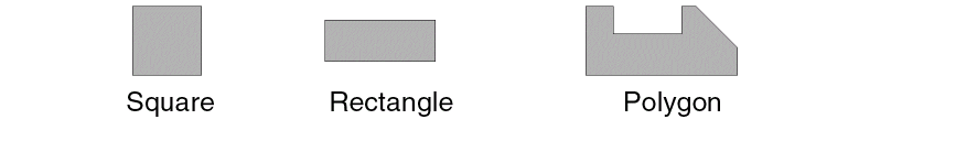 The following figure illustrates three shapes and their types. You can refer to each shape as a shape or a polygon.
