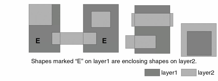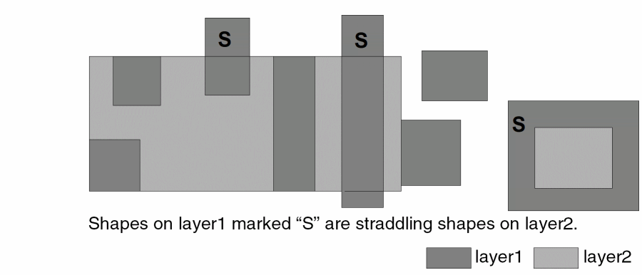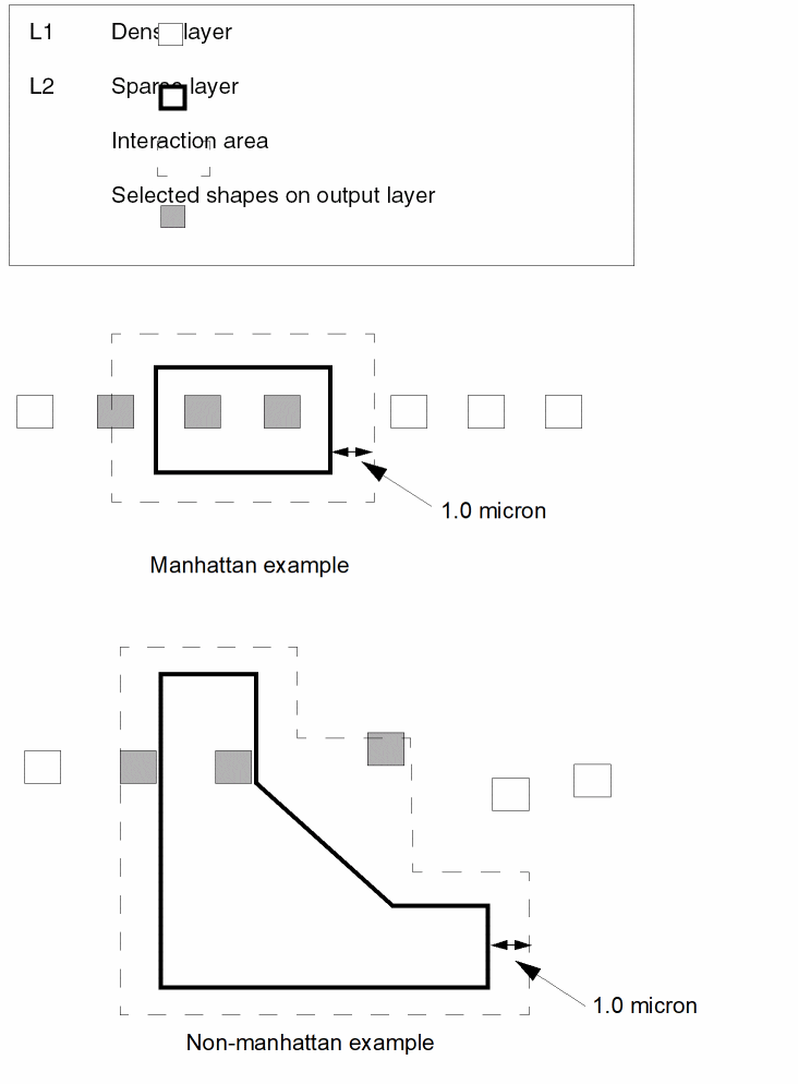 - If you don’t specify the “exclusive” option, a shape on the input layer is selected if it interacts with any shape on the related layer in the manner described by the selection command. It does not matter if there are other shapes on the related layer interacting in other ways with the input layer.