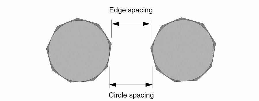 Because of this, when Diva converts conics and paths to polygons, there might be inaccuracies during DRC checks. Regardless of how many edges you use to represent a conic, the spacing is always different from the edge spacing. The following figure illustrates the problem.