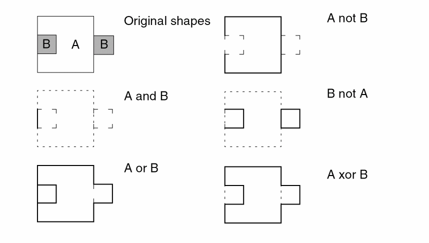 The following graphic illustrates two-layer and single-layer boolean operations.