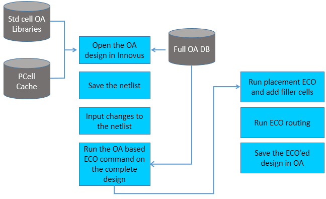 ecoOaDesignto read the new ECO Verilog netlist, which copies all of the floorplanning, placement, routing and spare bit marking from the pre-ECO OpenAccess database except those not existing in the new Verilog file. Instances existing only in pre-ECO library/cell/view would not be added in the new Innovus database. - Run the