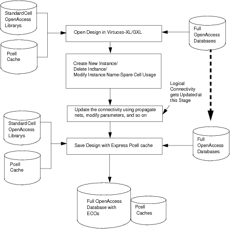 The following figure depicts the pre-mask ECO flow that implements changes made through the netlist.