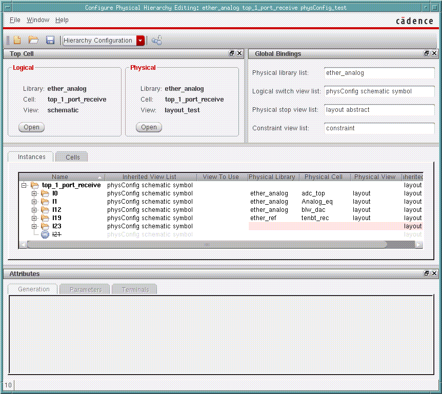 - Load the physical view from the Virtuoso analog block.