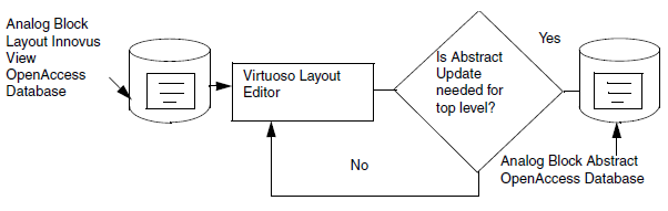 If the top-level STA flow requires block SPEFs, then run extraction and save the parasitic data back into OpenAccess. Keep the abstract view of the soft digital block updated and in-sync with the layout view to avoid any kind of layout mismatches at the top level-layout integration. The abstract view is required for the top-level integration because reading the detailed layout view and using that for place-and-route of the top level results in more run time. So, to avoid long run times, use the abstract view with boundary pins and metal blockages of the block.