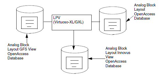 - Open the layout view of the soft analog block generated during the floorplanning of Verilog netlist and then call Load Physical View (LPV) to merge the optimized pin locations, layer information, size and updated block boundary generated during Generate from Source. The LPV form is available in the Virtuoso Layout-XL/GXL window. In the Choose Source Physical View field, enter the view name generated during Generate From Source.