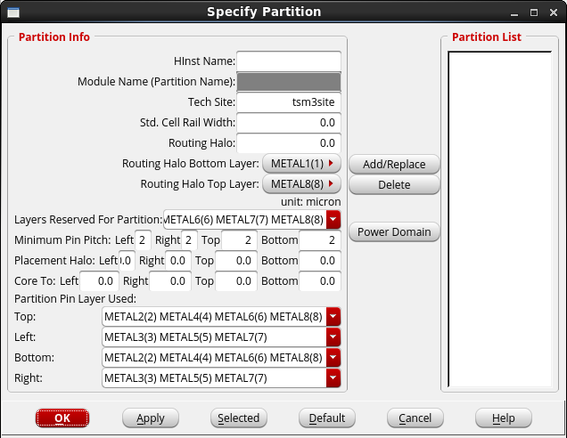 Similarly, power planning and power routing can be done in Innovus before running thepartitioncommand and then the-pushDownSpecialNetAsObsoption can be used to push power routing and any signal routing or metal blockage as blockages inside the partitions created by Innovus.