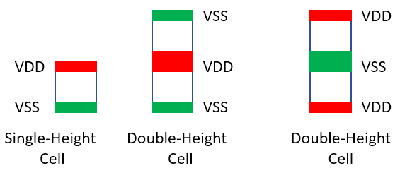 The diagram above shows how standard cells are placed along the row. These standard cells are single-height cells. Each row consists of abutted sites and the Placer in Innovus always snaps the cells to the site. With very few exceptions, standard cells are typically designed in a way that the cell widths are multiple integral value of the site width. For example, if the site width is 0.5um, the standard cells are designed with widths of 0.5um, 1um, 1.5um, and so on.