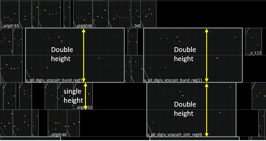 Note that CoreSiteDouble, for double-height standard cells, has the same site width as CoreSite, but its height is double that of CoreSite so that two single-height rows can overlay a double-height row completely.