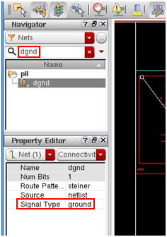 In the Navigator window, search for the top-level net that is to be specified as a ground net and change Signal Type to