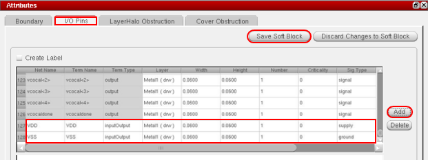 After adding the pin details, click the Save Soft Block button. - Net Name: power_net_name Term Name: