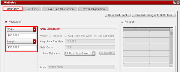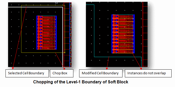The user can adjust and even create rectilinear boundaries for the unimplemented soft blocks by editing the prBoundary for the blocks from the top level to obtain a better packing for the floorplan. The boundaries can be stretched and chopped to achieve the desired area.
