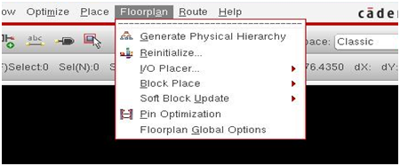 The assumption in this step of the flow is that the block being floorplanned is the top-level design for this sub-flow. The information derived from the top-level floorplanning (initial area estimate, width, height and the I/O pin locations) step is used in this step of the design. Although this data is just an estimate, it serves as a good start point for the flow. The real data is only known after circuit design is completed.