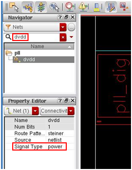 In the Navigator window, search for the top-level net that is to be specified as a power net and change Signal Type to
