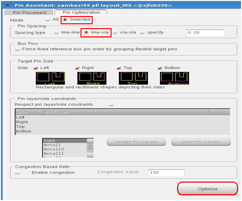 - Place and optimize the pins for the digital blockBlackBox as per the top-level floorplan: