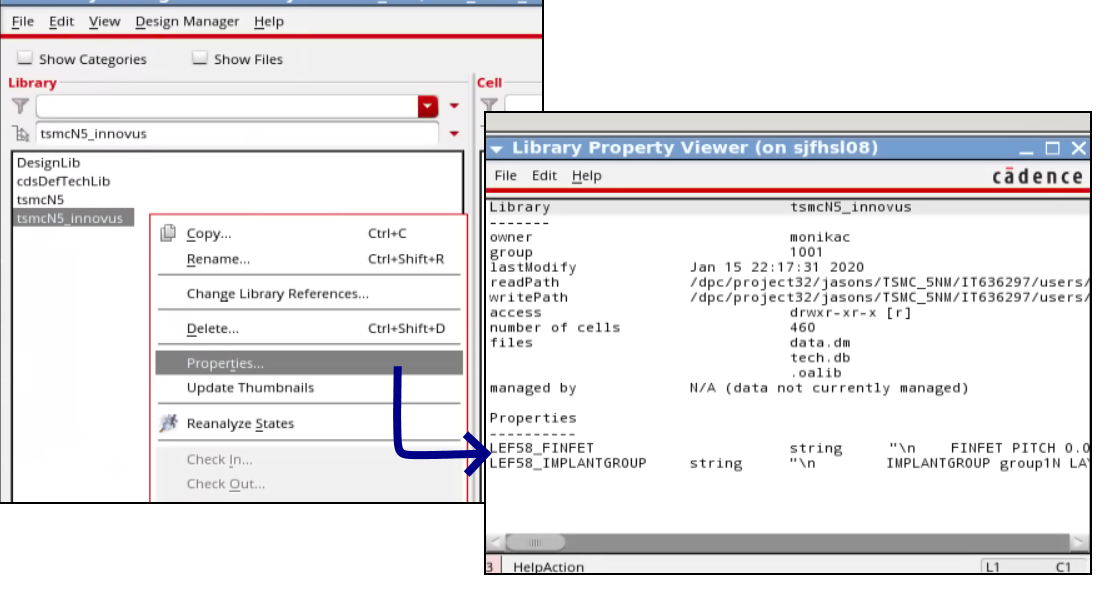 - In the listing of the libraries, right-click the name of the Rapid PDK tech library and select Properties from the context menu.