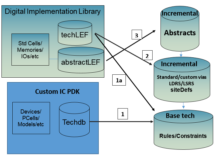 This is the easiest method for creating an MSOA PDK that could be used by Innovus and Virtuoso to implement mixed signal designs. The Rapid MSOA infrastructure removes the necessity for all DRC rules to be consistent between tech LEF and Virtuoso tech for a certain process. In other words, there is no need to change the Virtuoso tech file to align the DRC rules in it with those found in the tech LEF. Virtuoso obtains all the DRC rules from the base tech (the same tech used by Virtuoso in the past), while Innovus gets DRC rules from an ITDB layer that contains all the rules found in the tech LEF.