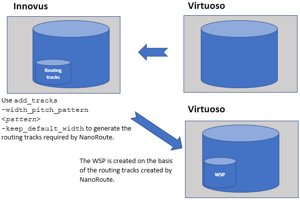 In a mixed signal flow in which the custom content is created in Virtuoso and the digital content in Innovus, a user may create a WSP in Virtuoso and mark it as the active WSP to be used for implementing the digital content of the design. In this case, Innovus must read and convert the user-created, active WSP to track patterns that are used by the router in Innovus.