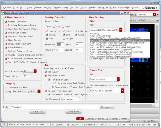 It is important to know how the Cadence software finds and utilizes some or all of the above vias. ConstraintGroups (CGs) in the tech file, such as the LEFDefaultRouteSpec (LDRS), guide the tools in determining which vias to use.