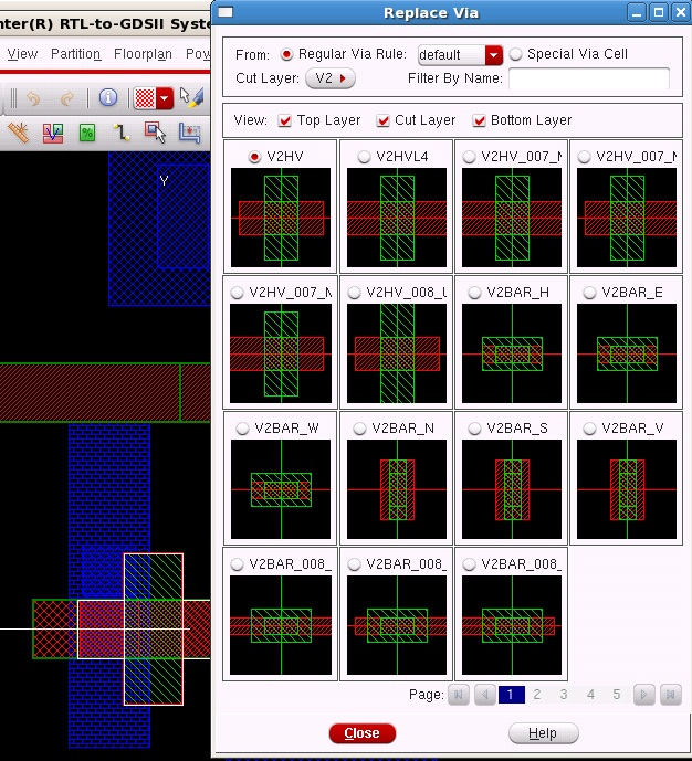 In advanced process nodes with complex DRC rules, NanoRoute must generate new vias that cannot be expressed as standard vias. In the past, such vias were saved to the design library as custom vias, which required the design library to be created in reference tech mode and made it somewhat difficult for users to copy the design from one library to another. There was also a need to implement a more flexible model for interoperating between Virtuoso and Innovus for any vias that NanoRoute would create in future technology nodes.