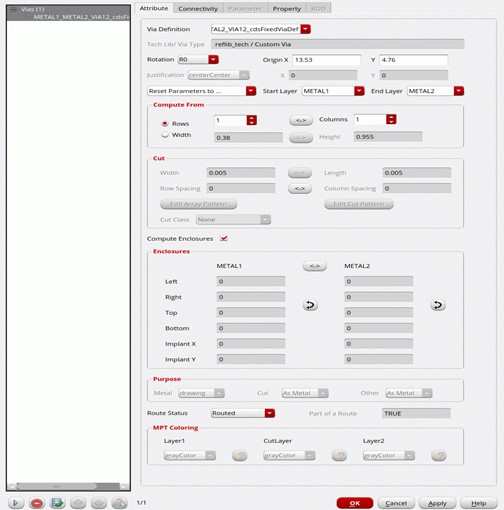 Note: In the current implementation, all Virtuoso applications continue to show Via Type for a cdsFixedVia as Custom Via.