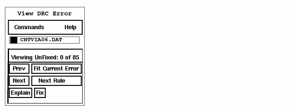 To make a single Dracula error file visible, click left on its entry in the RLW. The last entry you click on becomes the current Dracula error file in the View DRC Error window.