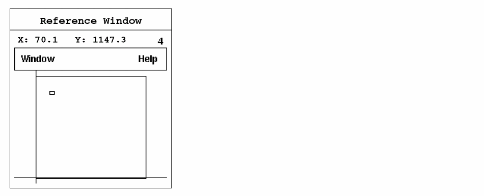To make it easier to orient yourself in the larger graphical user interface window, the Reference window provides a smaller rectangular representation of your entire design. The following figure shows a sample Reference Window.