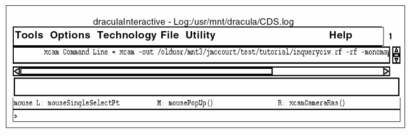 A draculaInteractive command window appears. Click on Utility – Create Dummy Cell. This command creates a dummy cell and library.