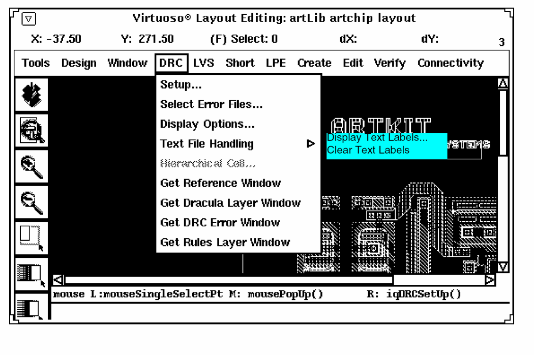 - From the DRC menu, select Text File Handling – Display Text Labels.