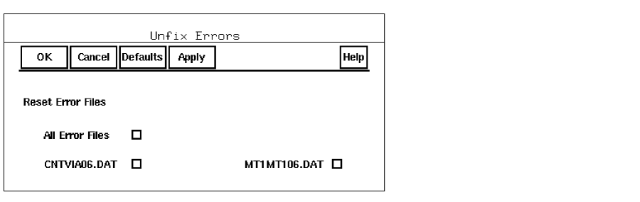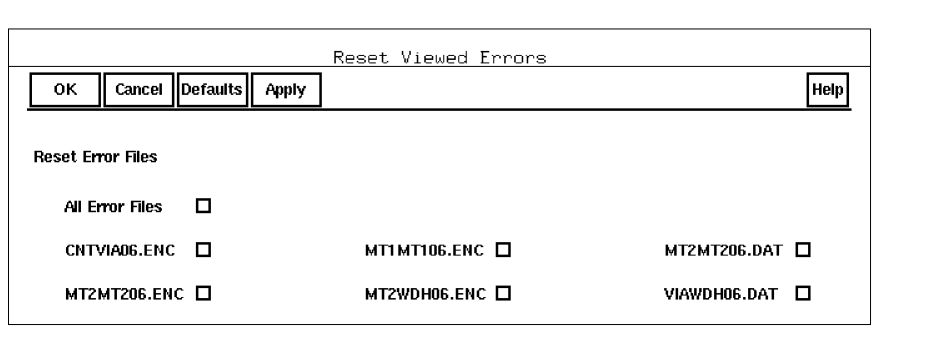 Reset Error Files lets you reset the status of DRC errors in the Dracula error files. Click on OK or Apply after you choose the following options.