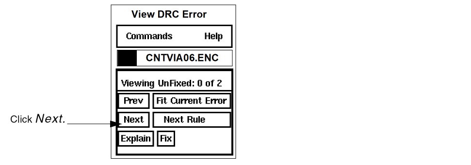 From the View DRC Error window, click left on Next.