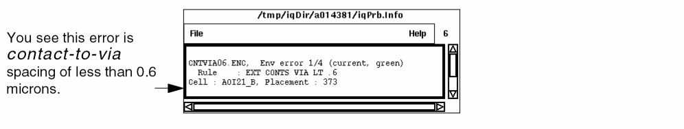 Before you can see the hierarchical DRC errors in the CNTVIA06.ENC file, you need to select the Hcell in which the errors occur.