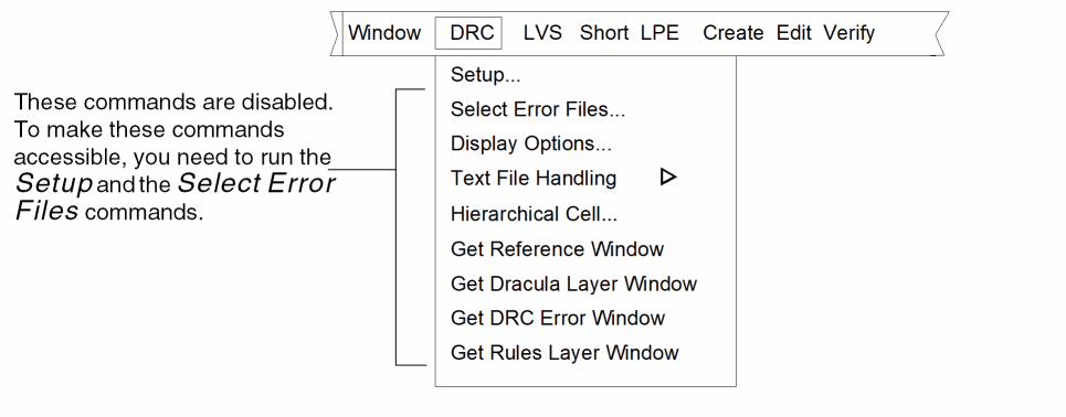 A Dracula run often generates several hierarchical DRC error files. To minimize the number of error flags in the graphical user interface window, you probably want to display only a few of the error files at once.
