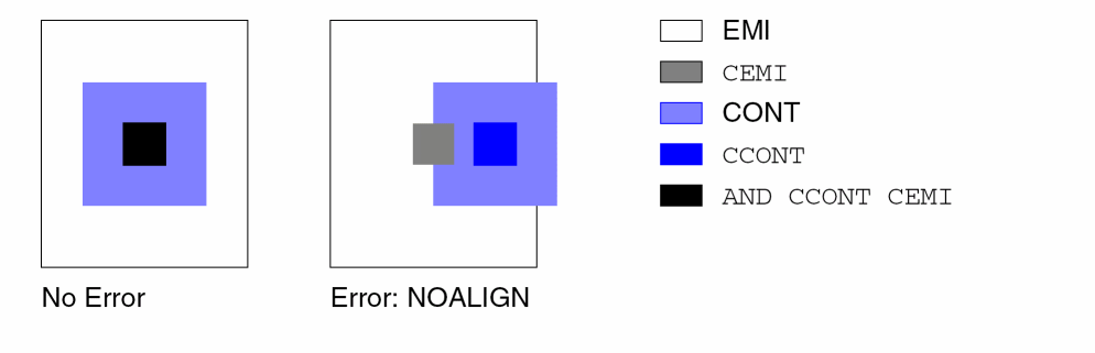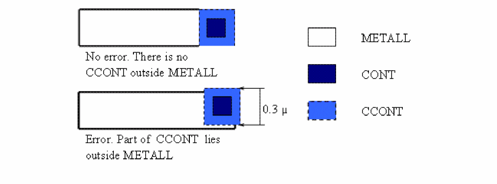 Checks for a contact layer that is not covered by a related conductor layer in either the composite plane or in the Hcells. You must specify the contact layer and related connect layers in a prior CONNECT command.