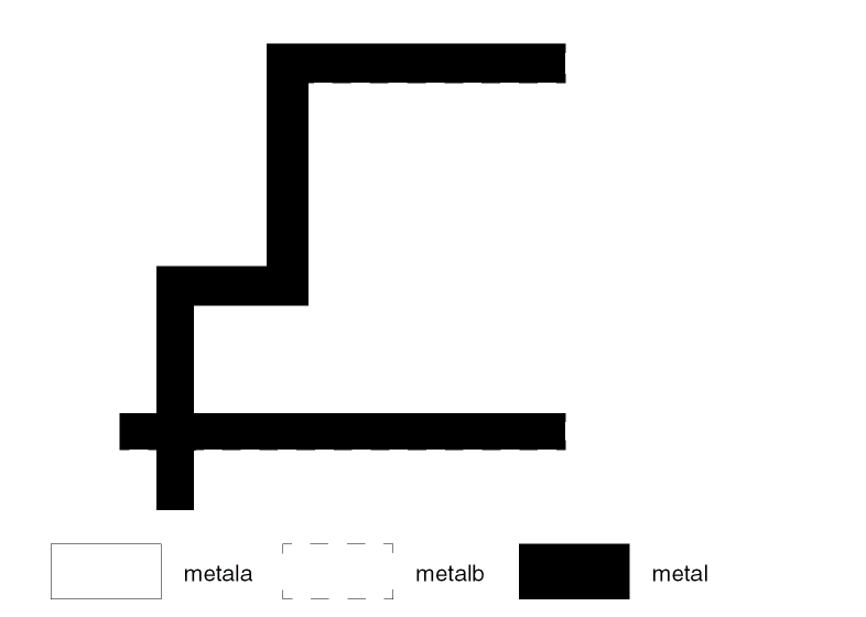The name of the trapezoid file created by the logical operation. Arguments layer-a and layer-b are order dependent and can affect the output trapfile if connectivity has been established. Electrical node information is automatically stamped on this output layer from layer-a after nodal information is set up on layer-a with the CONNECT command. The trapfile name can have up to seven characters and no special characters. A-Z and 0-9 are permitted, but the first character must be a letter.