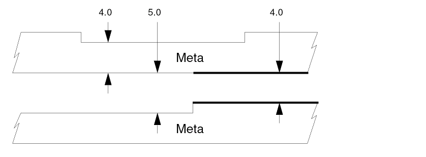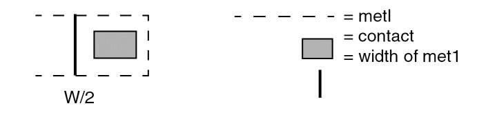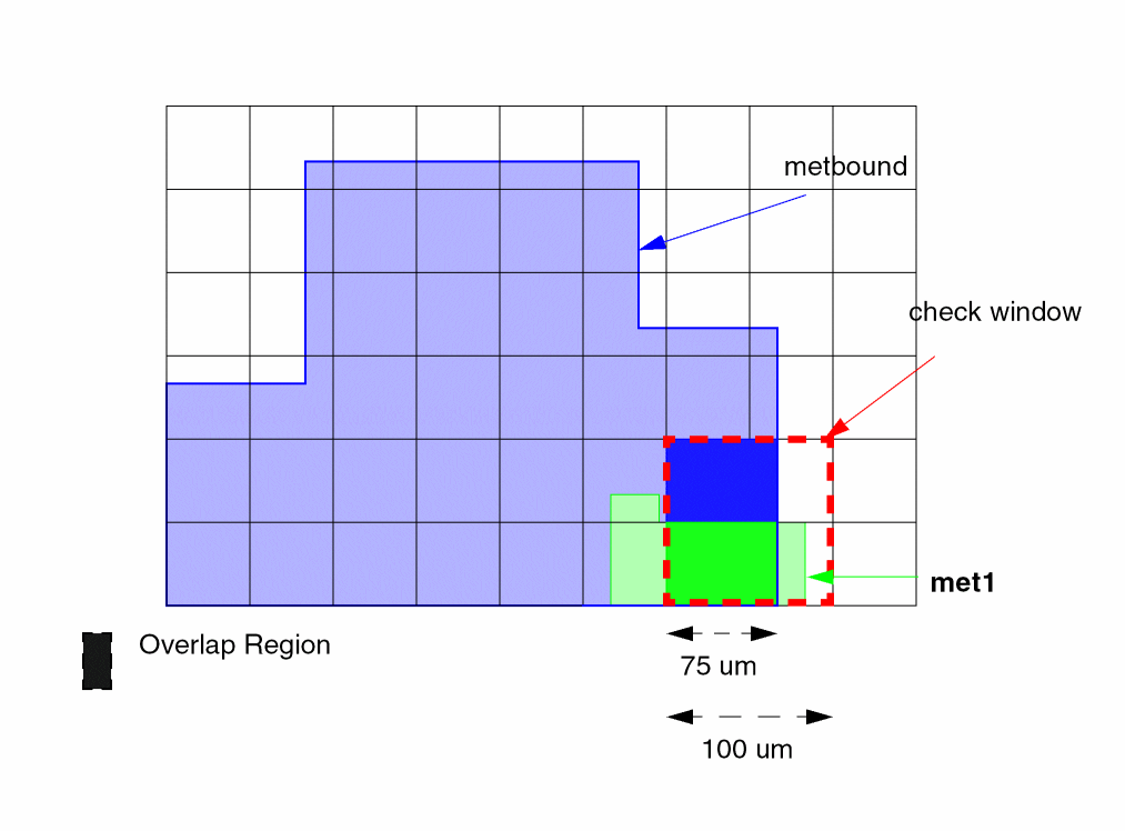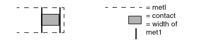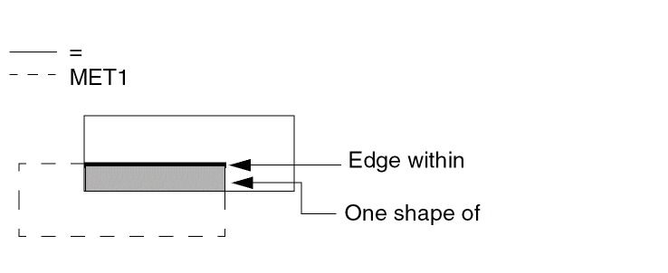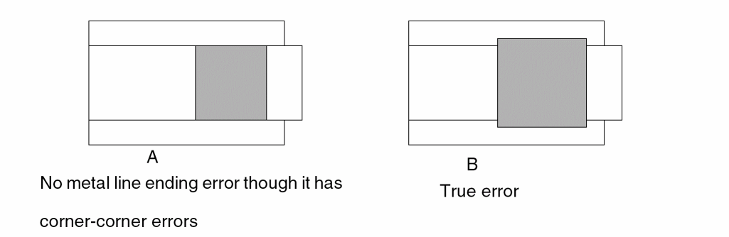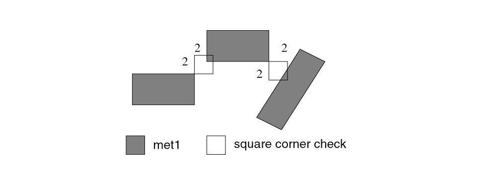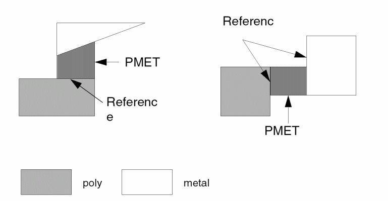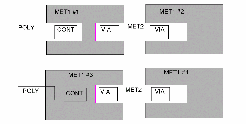 Also checks for external metal spacing as described in Example 2. Use the conjunctive-rename operation. This allows the &meta conjuncted layer to be used later in another DRC conjunctive check. Layer metal reverts to metal[O] at this point. Conjunctive-rename is optional and can save CPU resources.