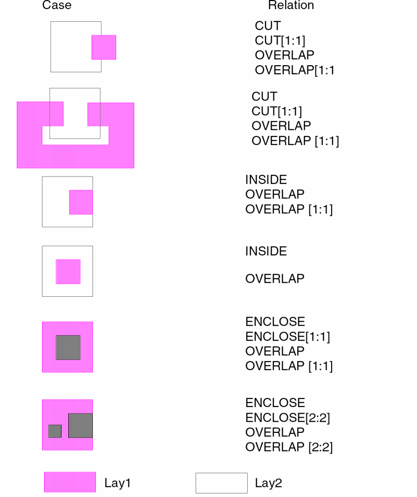 The logical operation commands create new pseudo layers using combinations of original layers, previously created layers, and import layers. The maximum number of logical operation commands you can specify in a single rule deck is 3,000.