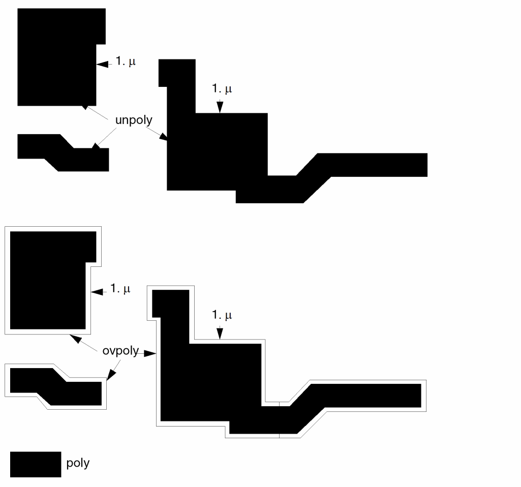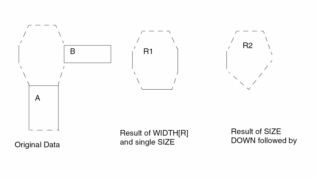For non-manhattan design, round-off issues are a well-known problem. This leads to a large number of "false" minimum DRC violations due to the snapping of vertices to a grid. For example, the user may start with a rectangle drawn at the minimum width of 1 um. This rectangle is then rotated by 30 or 45 degrees (or any angle that is not multiple of 90o). Due to snapping of the vertices to the grid, the resulting shape may have a width that is slightly less than 1um. This can lead to a "false" minimum width violation. ANGLED-EDGE-TOL sets the tolerance for the DRC operation in order to eliminate such false violations.
