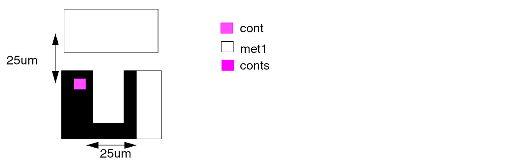 This example checks for metal contacts (mc) that are not 3 by n microns.