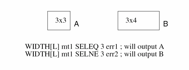WIDTH{[option1]} layer-a{&layer-a}[option2] LT/LE/RANGE/SELLT/SELLE/ SELGT/SELGE/SELRA/ GT/GE/EQ/SELEQ/SELNE n1 {n2} ANGLE = angle-opt {trapfile} {OUTPUT c-name l-num {d-num}} {&}