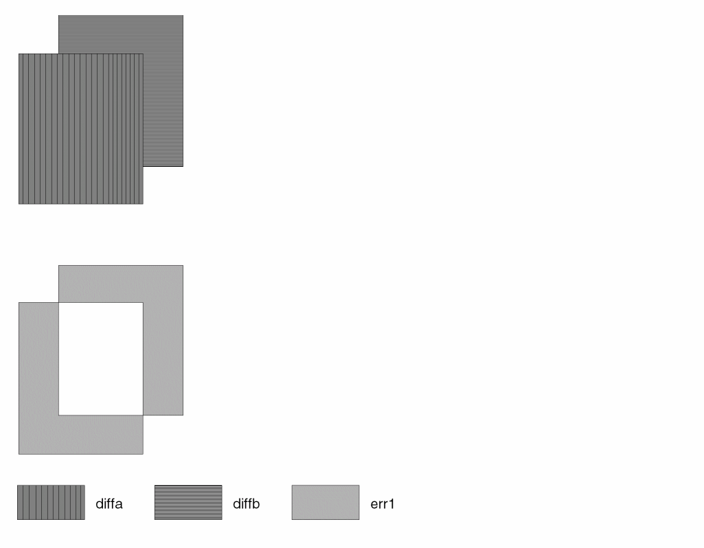 The following example shows a database comparison between layers that are supposed to be identically digitized.