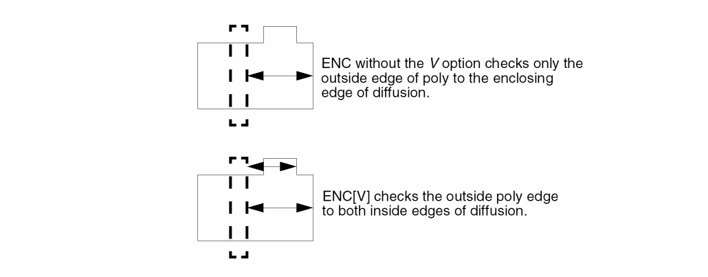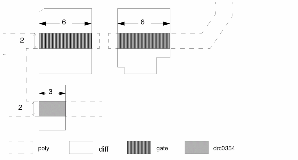This example renames the gate layer to &gwidth in the conjunctive-rename operation. This optional conjunct-rename operation saves a conjunctive command for the DRC check drc0796, thereby saving CPU resources.