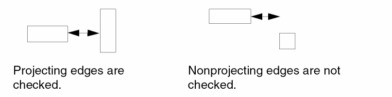 An ampersand (&) generates error flags for the corresponding input layers. Flags for layer-a segments are marked on layer-a, and flags for layer-b segments are marked on layer-b. These are conjoined layers. Subsequent checks on a conjoined layer filter these errors until, if any remain, they are finally output. You can use the renamed conjoined layer in later checks, avoiding the need to recompute these error flags.