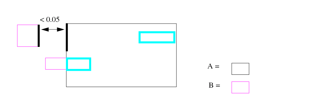 Flags an error if the two segments are spaced less than n1 for LT or less than or equal to n1 for LE. Does not flag an error if the segments touch.