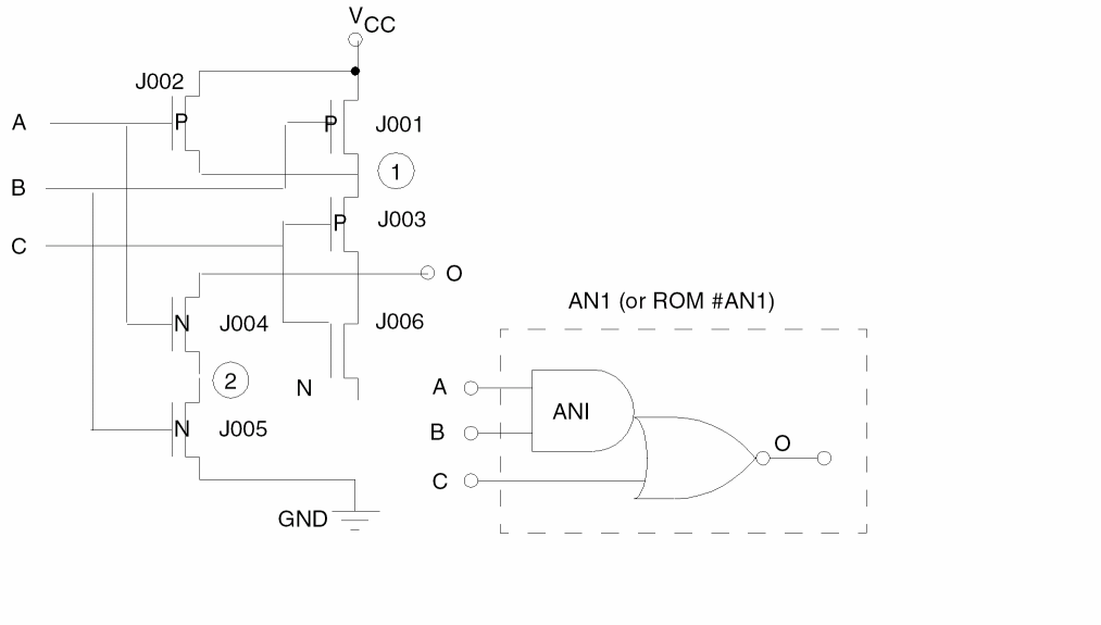 A logic schematic is concerned only with an element’s logical function–NAND, NOR, AND, OR, and so forth—not with how this function is implemented in transistors. Therefore, the schematic does not provide enough information to perform a consistency check on gates that have the same logic function but different implementations. To solve this problem, Dracula reads a subcircuit description data file you create with the Circuit Description Language (CDL) described in the