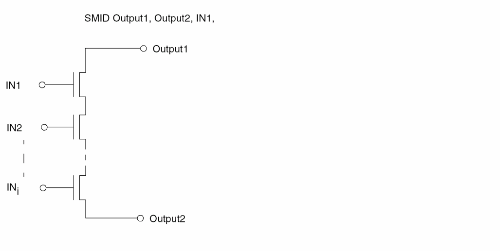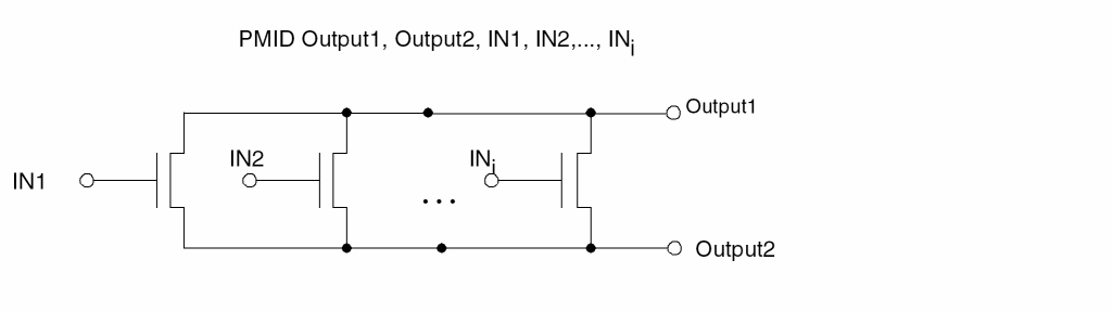 I1and another forI2) in the instance being parsed by LOGLVS. And, their source node ( connected to GROUND) is assignedPAD1andPAD4respectively. This means that although this instance did not specify certain parameters for the POWER and GROUD originally, once the parameters are specified in the top (upper) level, the instances (in the lower level) are also inherited from the parameter specified on the top level.