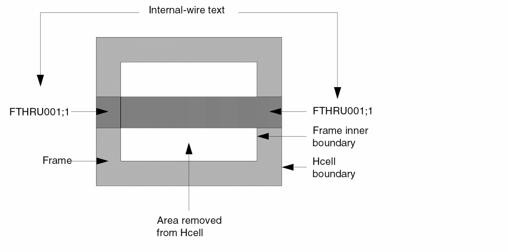 These steps guarantee that if a frame splits a pin assigned text or a feedthrough with two connect locations, Dracula correctly assigns text to the pin or feedthrough using an Internally-Wired wire type. For details, refer to the
