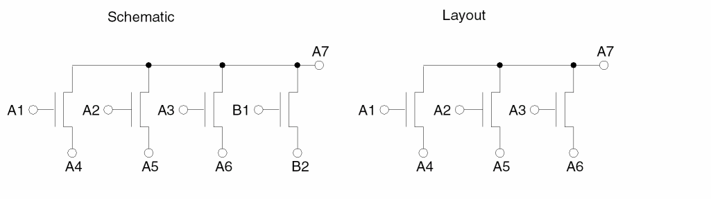 - Check for illegal devices such as MOS diffusion connections to more than two electrical nodes or no electrical node.