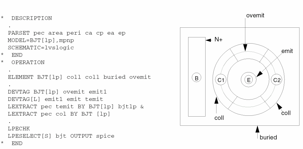 The following sections describe standard SPICE parameters and user-specified parameters. LPE extracts for MOS, parasitic diodes, parasitic capacitors, element resistors, and bipolar devices.