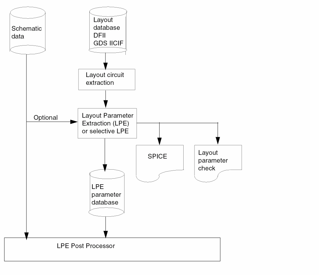 LPE creates both the layout parameter database and the link between layout and schematic compiled by the Layout Versus Schematic Network Compiler (LOGLVS). For information about LOGLVS, refer to